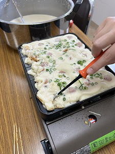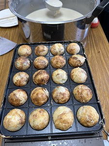 「ハマりそう・・」 関西人なら必ず持っている「たこ焼き器」と言われてもピンと来なかったけど。今回、青年たちと1000個越えのたこ焼きを作って、その美味しさと面白さにハマりそう・・。う〜ん「炎たこ」欲しいなぁ・・。どうしよう。 |