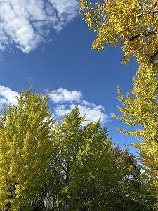 「秋晴れ」 雲一つなく青く澄み渡った空、色づき始めた木々、自然の美、神さまの御業を覚えつつ市内の公園を散策しました。片方でモニュメントのタワーの造形美が自然と組み合わされ溶け込み、調和の美を見せてくれています。人の業が神様に用いられて輝いているのですね。 |