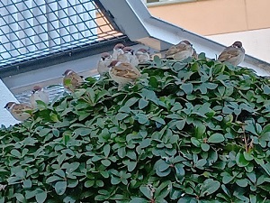 「一羽のすすめにさえ」 寄り添っているスズメの群れを見つけました。暖を取り合っているかのようで寒そうでした。ふと浮かんだのは「心くじけて」という賛美です。「一羽の雀に 目を注ぎたもう」という折り返しの言葉です。なにか心が暖たかになったように思いました。 |