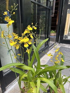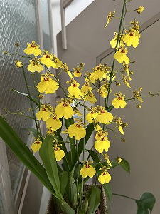 「花の定期便?感謝」 気が付かないでいたら「今年も咲きました。良かったら飾ってください」そんな素敵なプレゼントが教会の玄関先に二鉢置かれていました。嬉しい!お隣の師匠が丹精込めて育てたオンシジウムです。早速、皆さんに見ていただく事に。「綺麗ねぇ〜」と皆んな、うっとり。 |