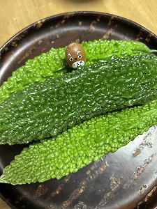 「ピカピカ・ゴーヤ」 「今年の採り納めよ」といただいたゴーヤが、あまりにもピカピカしていて。なかなか冷蔵庫にしまえない。見ているだけで幸せな気分に。この夏も忙しかったなぁ〜でも、なんて楽しかったんだろう。「神さまありがとうございました」ピカピカゴーヤを見ながら、ピカピカ青年たちの顔が浮かんでくる。 |