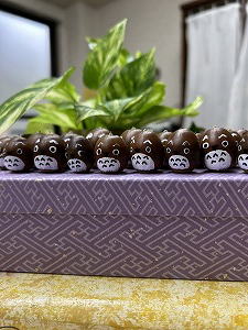 「トトロ軍団」 今年も、どんぐりトトロを量産中。楽しいなぁ。今年のどんぐりは実がパンパンで、作った後から裂け目がうまれることも。要ダイエットの子達です。でも愛おしい。 |