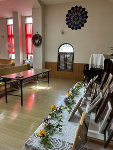 「霊による一致」 ペンテコステの日、教会員みんなで教会の掃除をした。「大好きな私たちの教会」が綺麗になっていくのを見るのは嬉しい。みんなでワイワイ奉仕できるのが楽しい。和やかな空気が伝わるのか、教会の庭の花たちも心なしか嬉しそう。 |