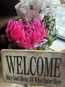 「God Bless You!!」 素敵なウェルカムボードをリサイクルショップで発見、購入。どこに飾ろうかなぁ。訪れてくれた人すべてに神さまの祝福があるように!の文字は、教会員全ての思いだから。「May God Bless All Who Enter Here.」 |