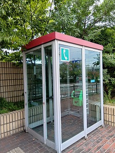 「公衆電話」 市立病院通路で見かけた公衆電話ボックスです。スマートホンがあれば大丈夫という時代ですが、イザと言う時役立つのが公衆電話です。広い室内に低い位置に設置された電話機。設置者の行き届いた配慮と愛を感じました。 |