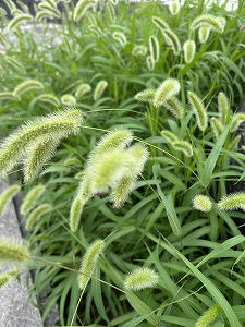 「犬派?猫派?」 ふわふわと、秋風に気持ちよく揺れるエノコログサ。漢字では狗尾草。犬っころの尾に似ているからついた名前だとか。でも、猫じゃらしとも呼ぶよね。あなたはどちら派? |
